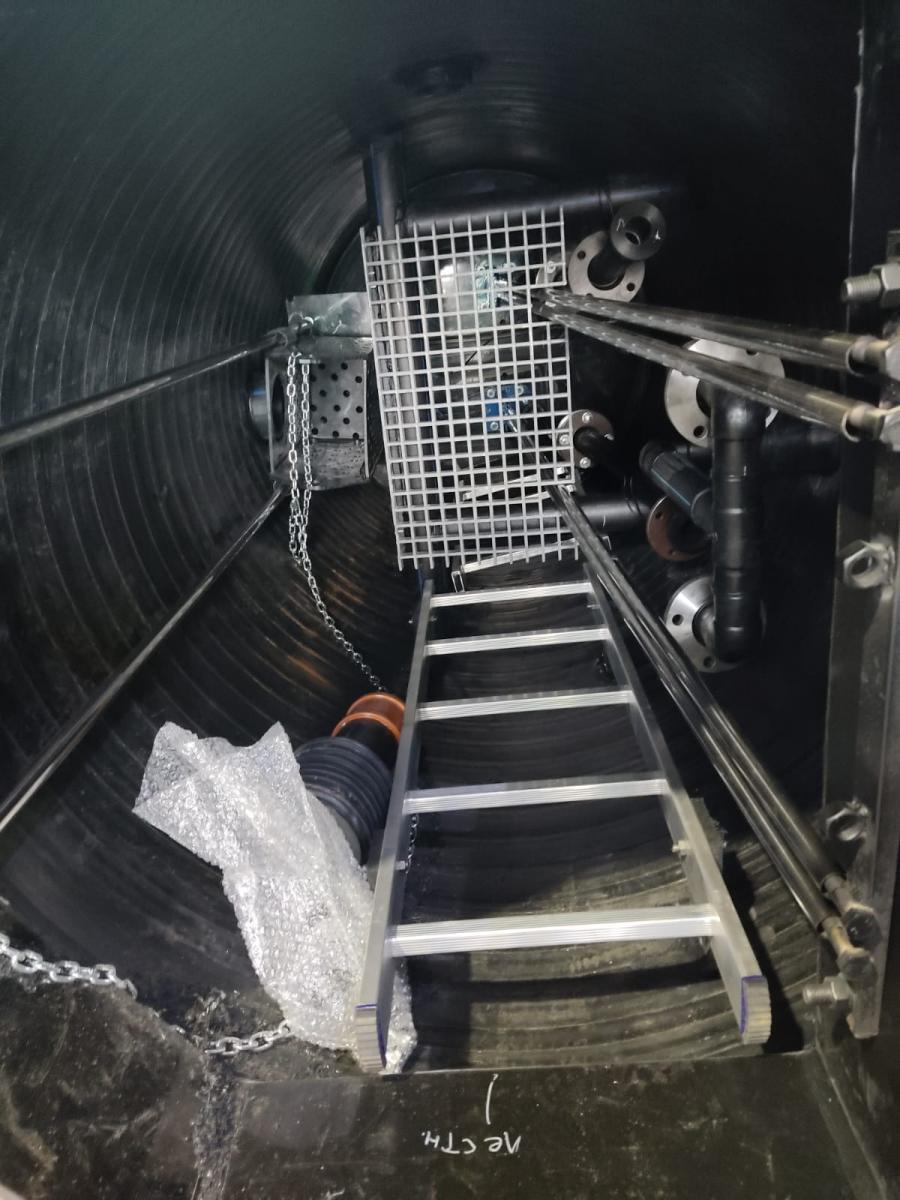 Полученная коррозионностойкая емкость цилиндрической формы может быть укомплектована разнообразным оборудованием: насосами, поплавковыми датчиками, лестницей, трубопроводными деталями, обратными клапанами, задвижками, газоанализатором, датчиком давления, расходомером, дробилкой и шкафом управления. Конструктив наших КНС позволяет легко проводить техническое обслуживание, менять насос или другие комплектующие без перебоев рабочего процесса.